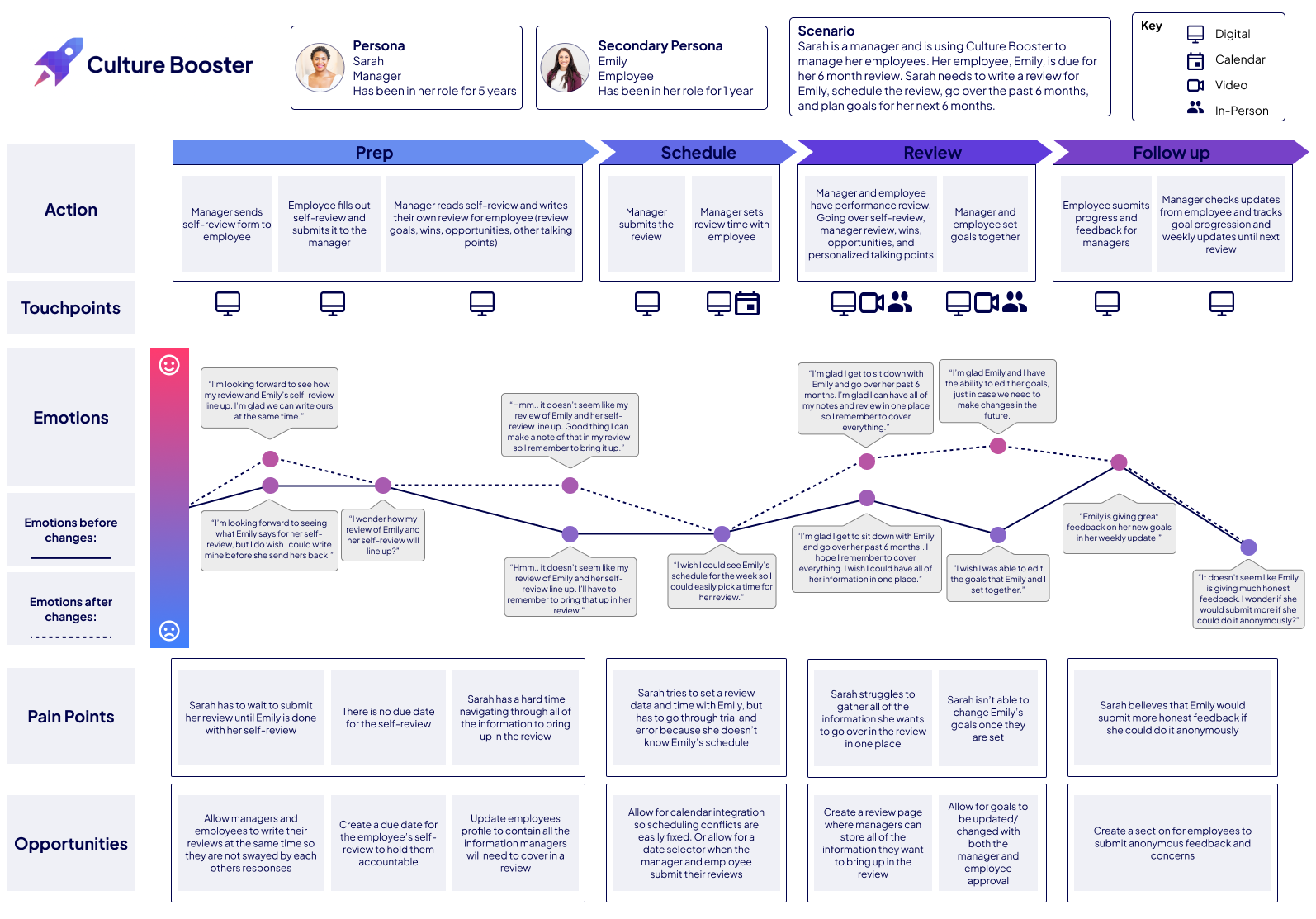 I created this map based on the comparative analysis research in order to model the process of what a performance reviews is like for current users on other competing platforms.