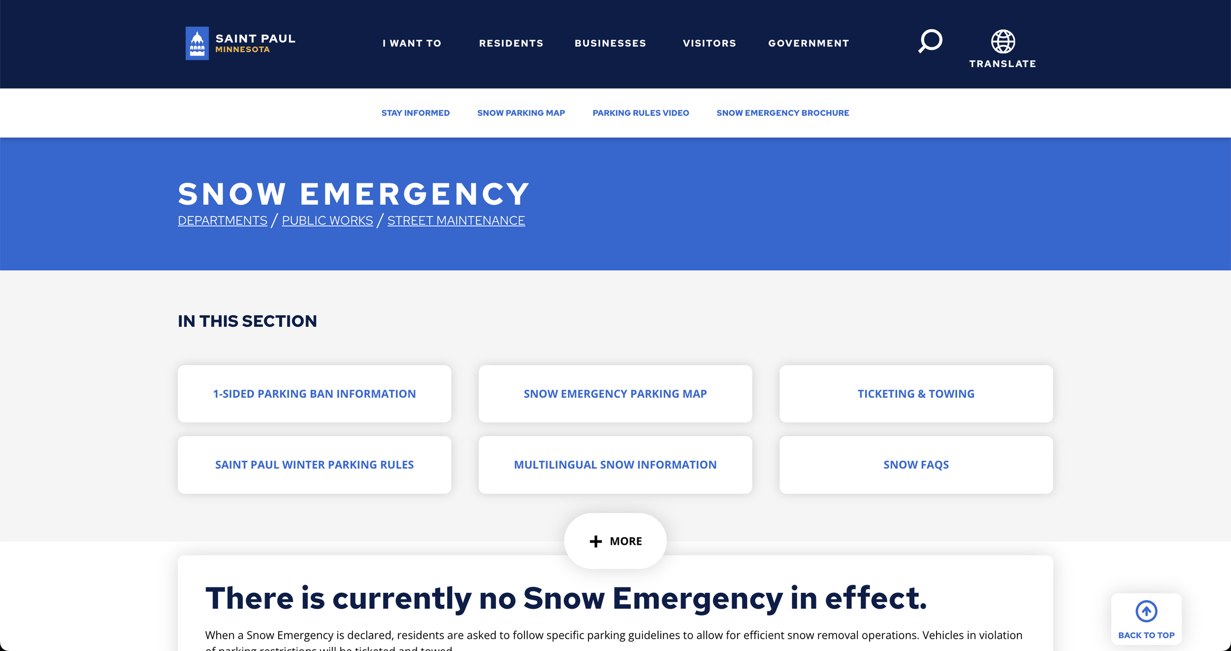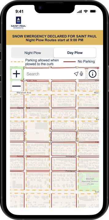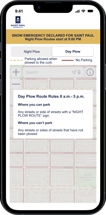 Situation: Parking in Saint Paul in the winter is stressful, especially during a snow emergency. Accessing the current snow emergency parking map for Saint Paul takes multiple steps that users don’t have time for.