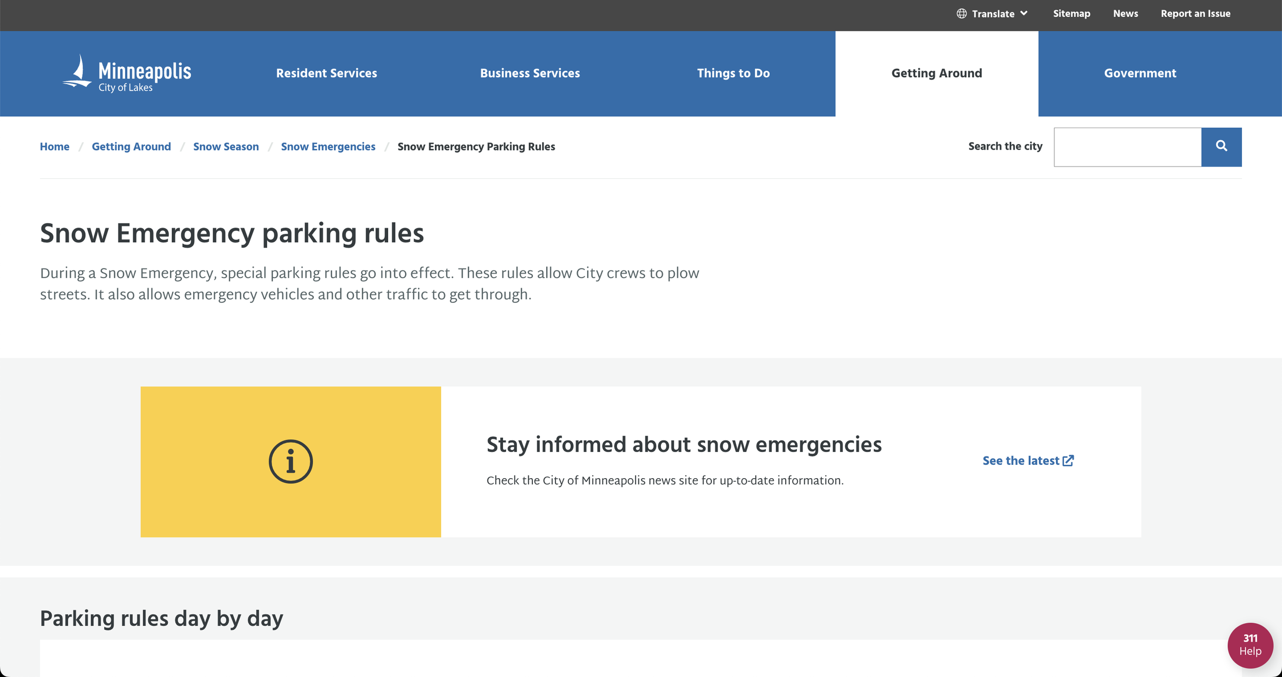 I started off by testing Saint Paul’s snow emergency webpage and the map. I tasked the first round of participants to navigate to the webpage, find the map, look up an address, and understand the parking rules for that location. The participants that I interviewed had two main takeaways.