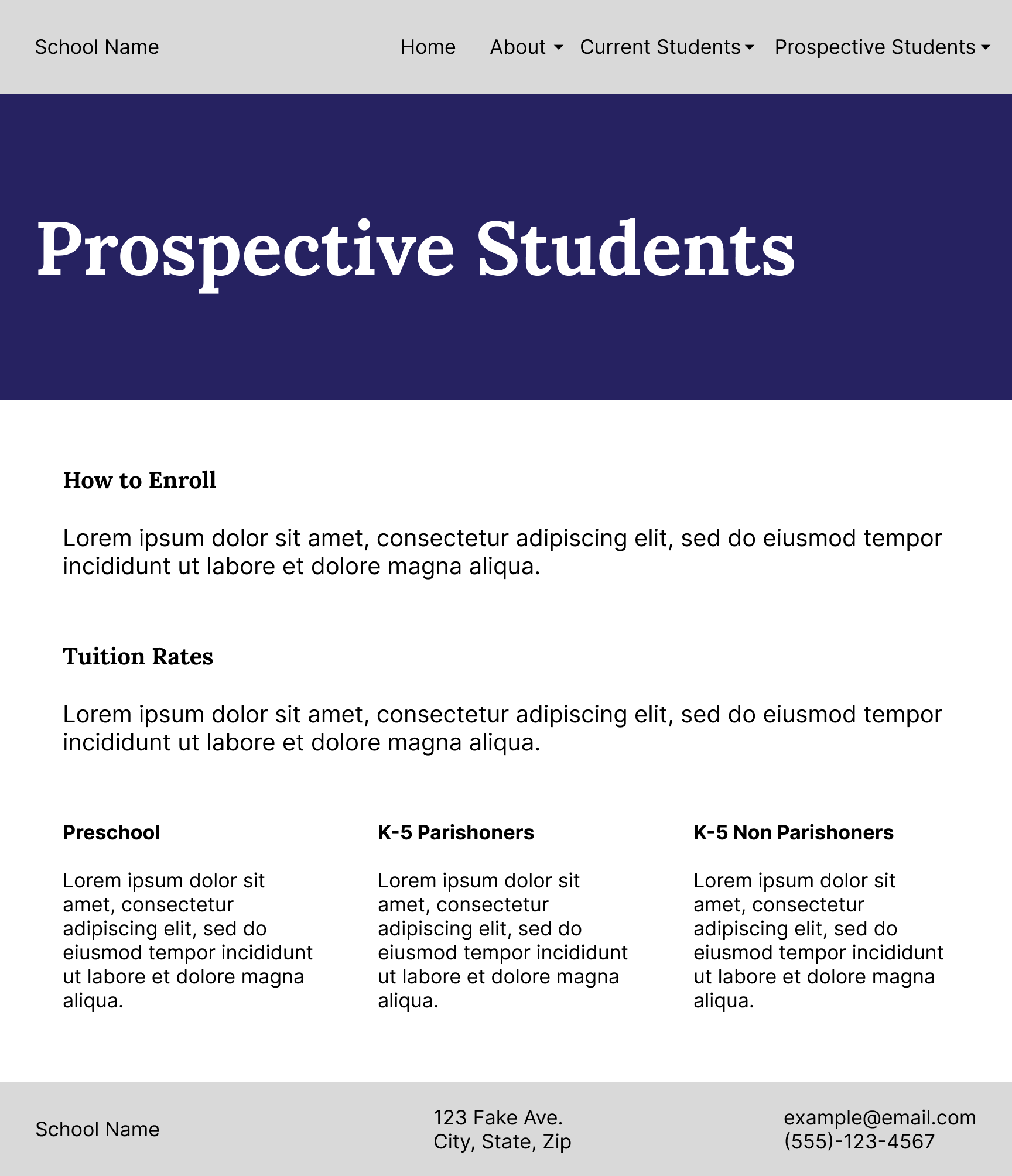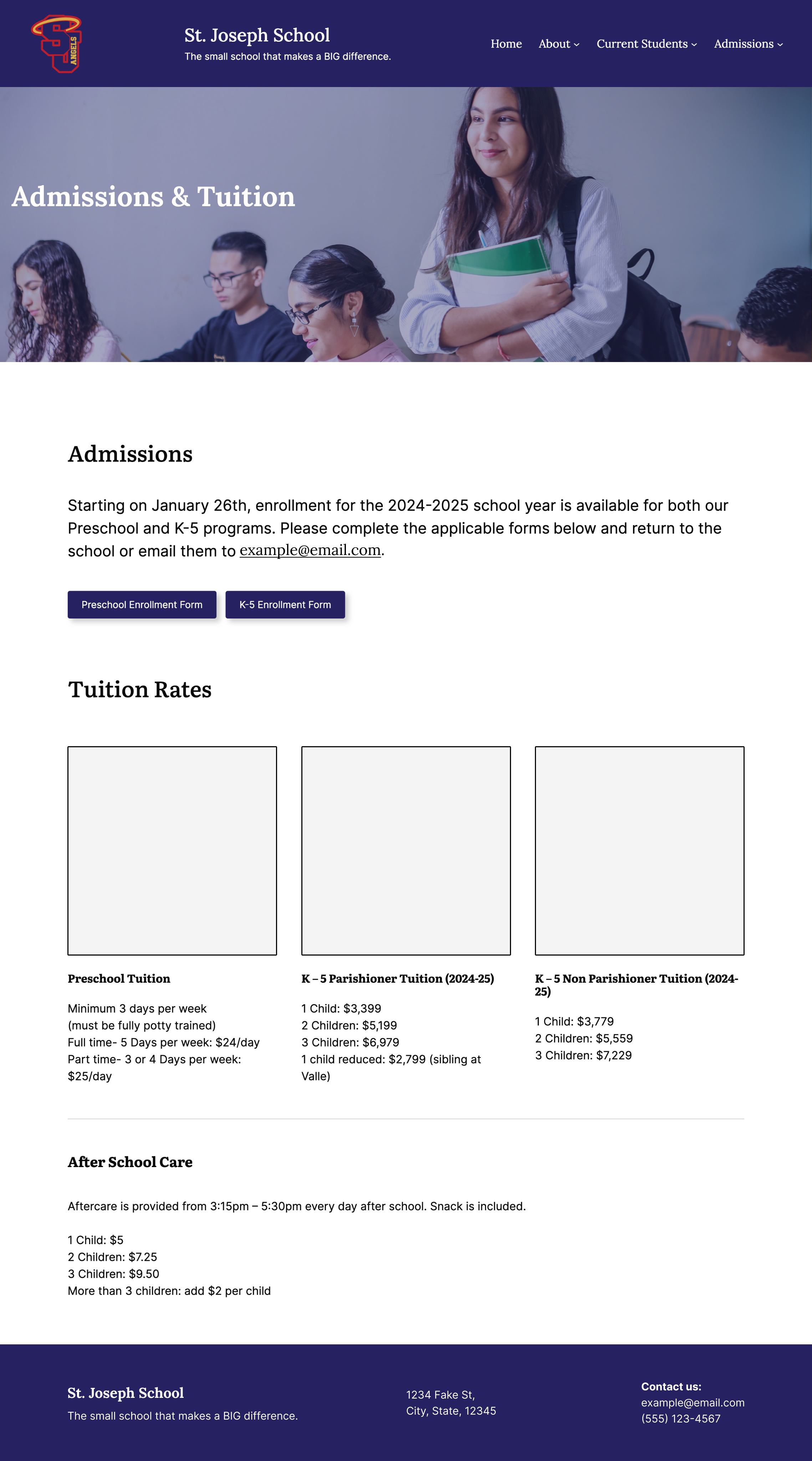 Admissions & Tuition: Easily presenting tuition and enrollment information for prospective families