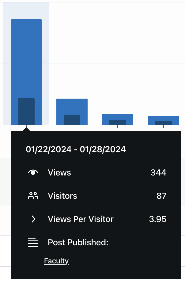 Since publishing the website on January 22, 2024 the website has seen in a consistent amount of visitors each month. The first few days were much higher than average due to the site being promoted at a school open house. Since then, there are an average of 20 visitors per week.