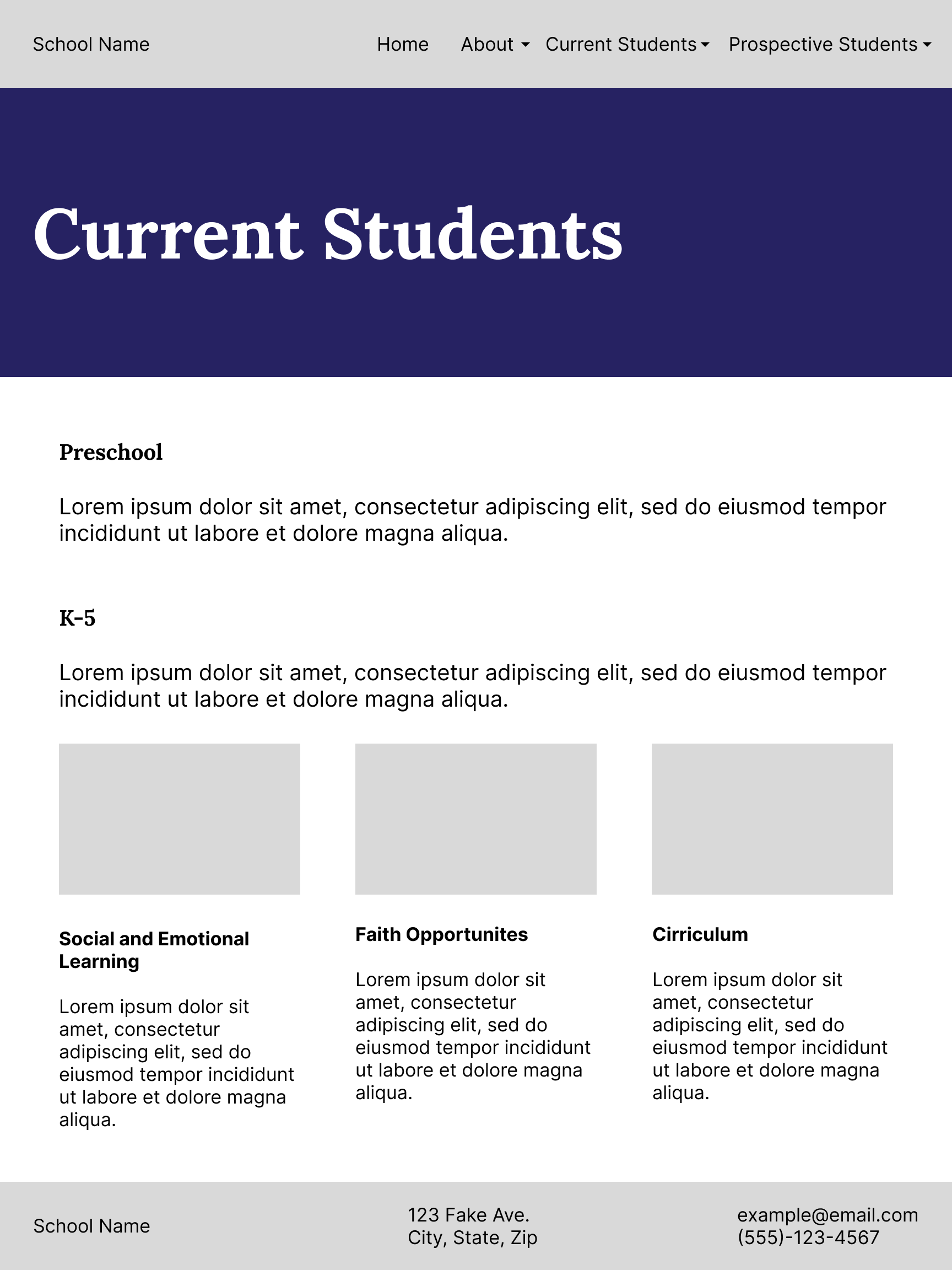 In order to protect the digital privacy of the students of the school, I’ve used stock images and replaced private information. If you would like to see the live final product, please contact me at lhartley13@gmail.com.